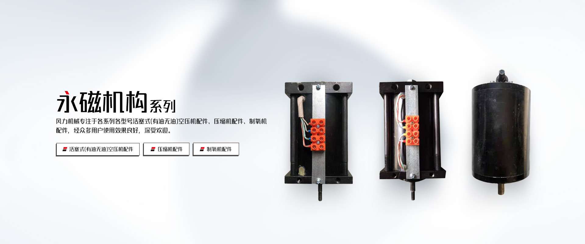 乐清市风力机械有限公司是以生产国内外、各系列各型号活塞式(有油无油)空压机配件、压缩机配件、制氧机配件为主的专业厂家。